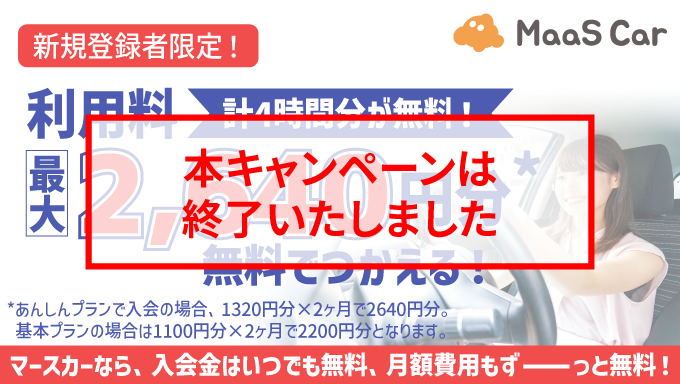 | 対象者 | 期間中に初めてMaaS Carにご登録の方(法人会員を除く) |