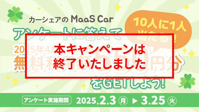 対象期間中にアンケートにお答えいただいた会員様の中から、抽選で10人に1人に「2025年4月に使える550円分割引」をプレゼントいたします。
