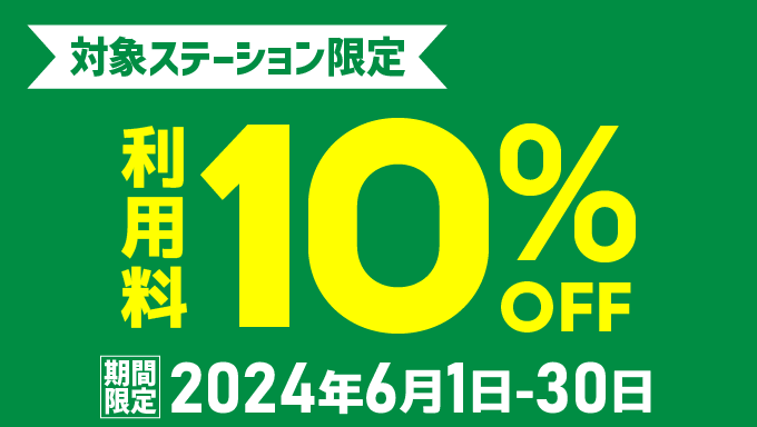 詳細についてはキャンペーン詳細の「【対象ステーション限定】利用料10%OFF(2024年6月)」をご覧ください。