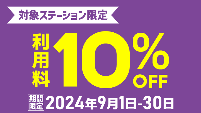 詳細についてはキャンペーン詳細の「【対象ステーション限定】利用料10%OFF(2024年9月)」をご覧ください。