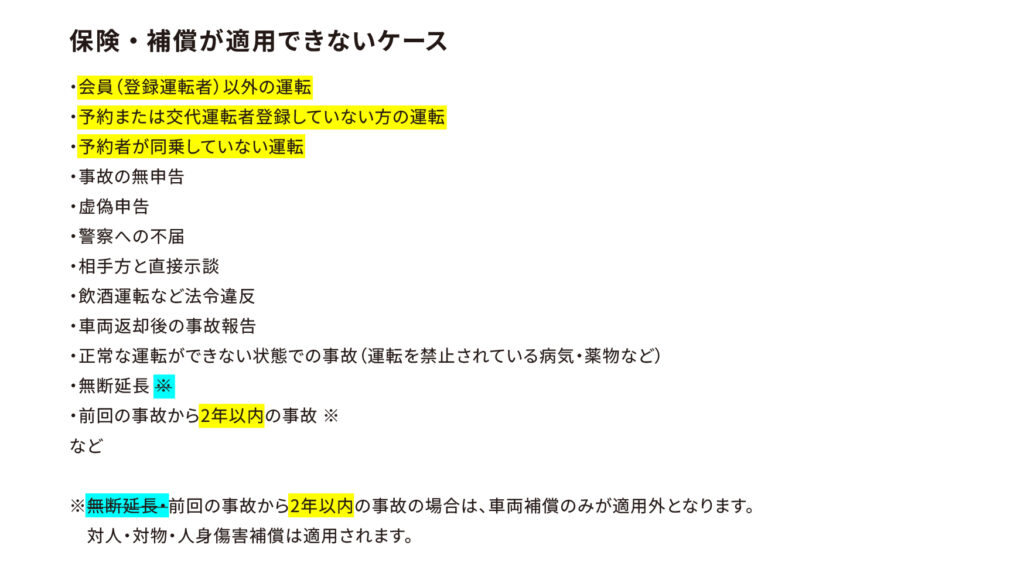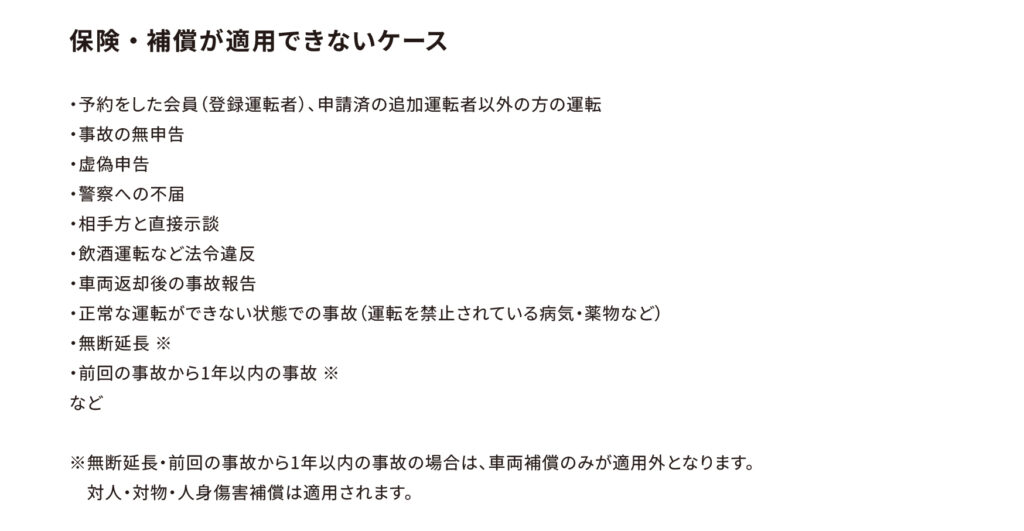 「保険・補償が適用できないケース」を下記の通り改定いたします。