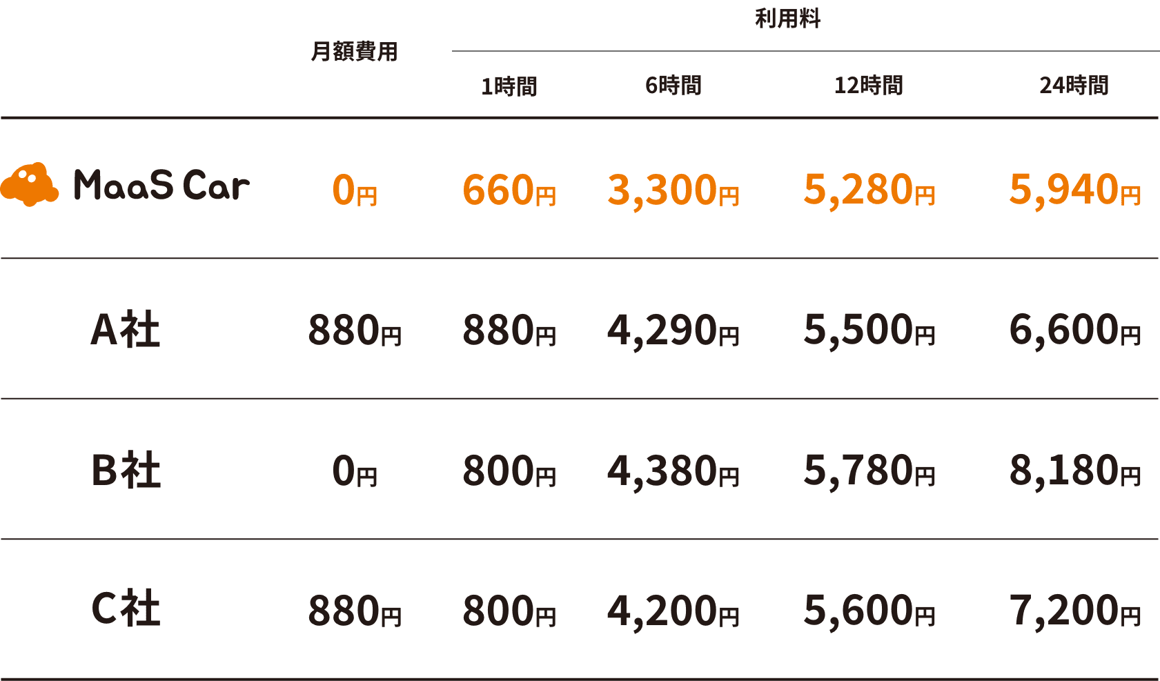 ※他社サービスの料金は2025年10月現在の情報(夜間パックなどを除く、日中にご利用の場合の料金)です
