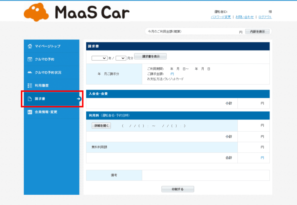 PCマイページの「請求書」はご利用(ご返却日)の翌月第4営業日に反映されます。