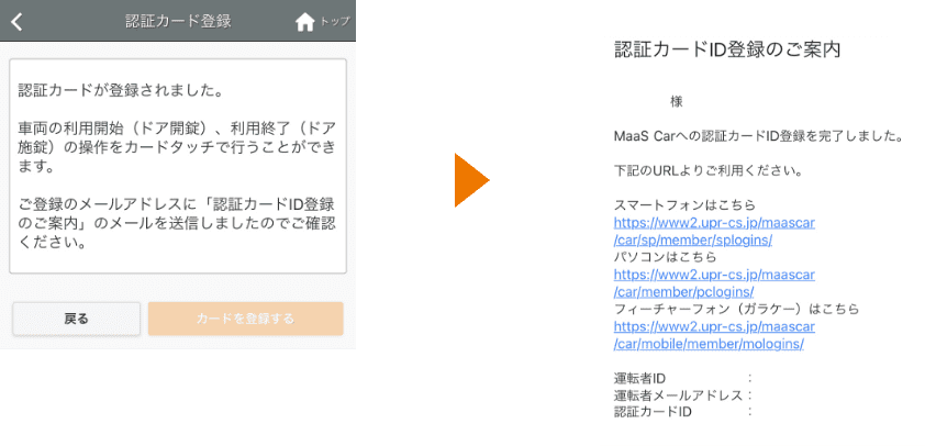 ご登録のメールアドレスへ「認証カードID登録のご案内」メールが届きます。